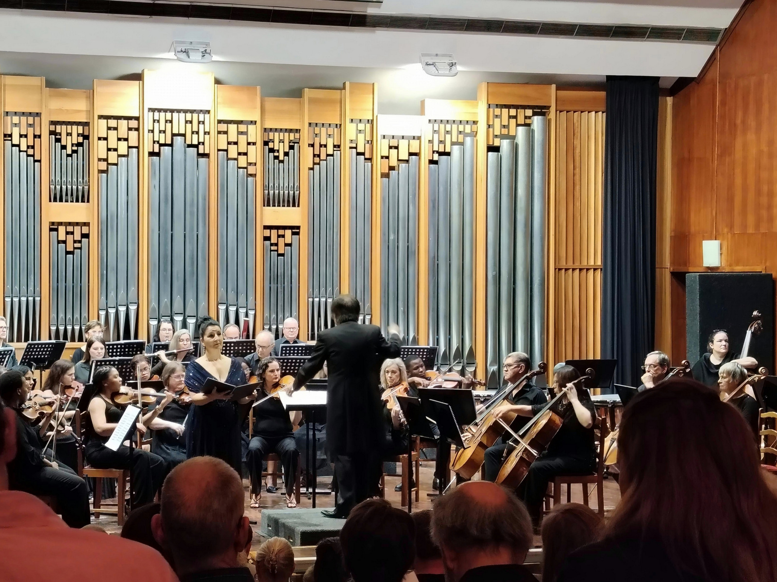 Die besoekende Japannese dirigent Yasuo Shinozaki dirigeer die uitvoering van Berlioz se Les Nuits d’été met die mezzosopraan Violina Anguelov in die Odeion. Foto: Morné van Rooyen