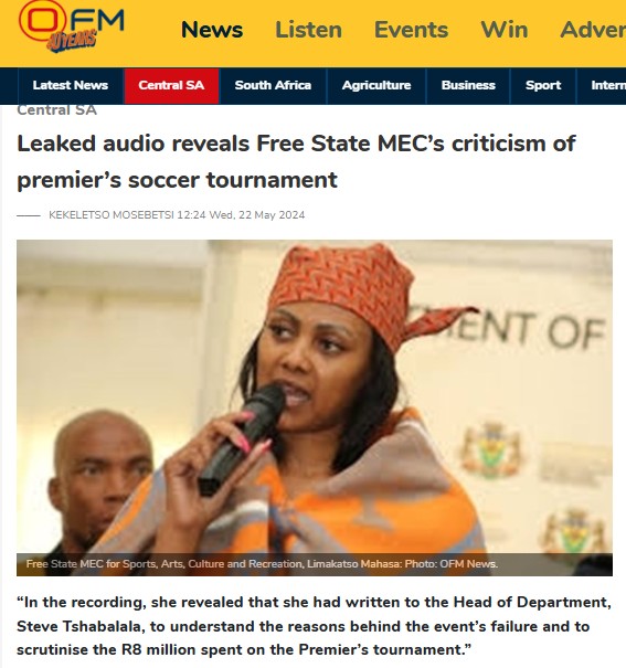 In 2024, a leaked audio recording had implicated Tshabalala in questions surrounding the management of public funds during events overseen by former MEC Limakatso Patricia Mahasa. These included an R8m premier’s soccer tournament and a failed Freedom Day celebration in Thaba Nchu, both of which were criticised for alleged supply chain irregularities.