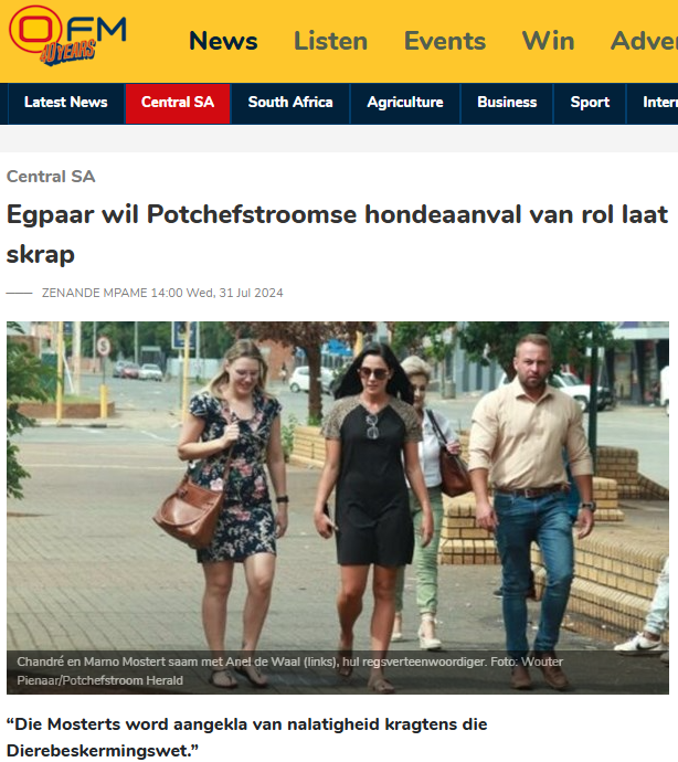 The case dates back to 2022, when Marno and Chandré Mostert’s domestic worker, Dipuo Kokolosi, was allegedly attacked by three of their pit bulls while she was alone in the house washing dishes.