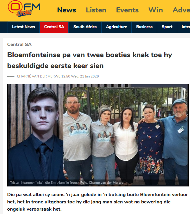 Tristan Kearney (20) kom weer Dinsdag (24/2) voor in die Bloemfonteinse streekhof. Hy gaan glo ’n formeel pleitooreenkoms aflê en sy vonnis aanhoor, presies ’n jaar en twee dae ná die ongeluk.