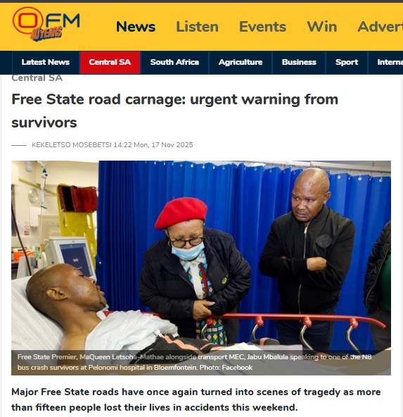 Last November, ten people died in a bus accident on the N8 between Botshabelo and Bloemfontein. The crash, involving a bus and a truck, also left dozens injured, underscoring the persistent dangers on the province’s roads.