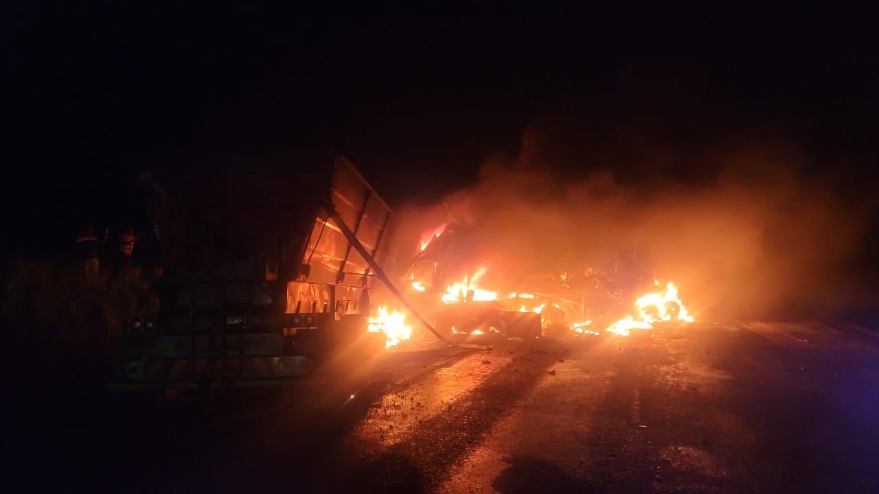 The collision between two trucks and two cars early Tuesday (24/3) morning caused a fire that engulfed the trucks. Authorities arrived at the scene to discover two light motor vehicles had seemingly caused the accident, said Free State road incident management systems chairperson Sipho Towa.