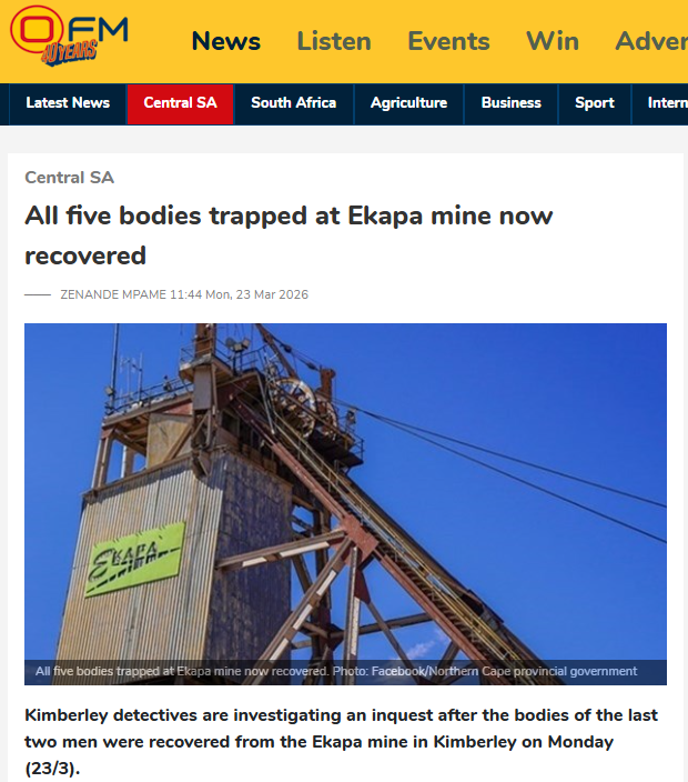 Numsa demands Ekapa CEO’s arrest over deaths, unpaid workers─── ZENANDE MPAME 13:30 Tue, 24 Mar 2026