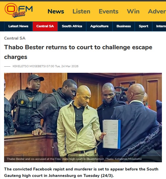 High court to rule on Bester’s Mangaung escape dispute─── KEKELETSO MOSEBETSI 10:20 Wed, 25 Mar 2026