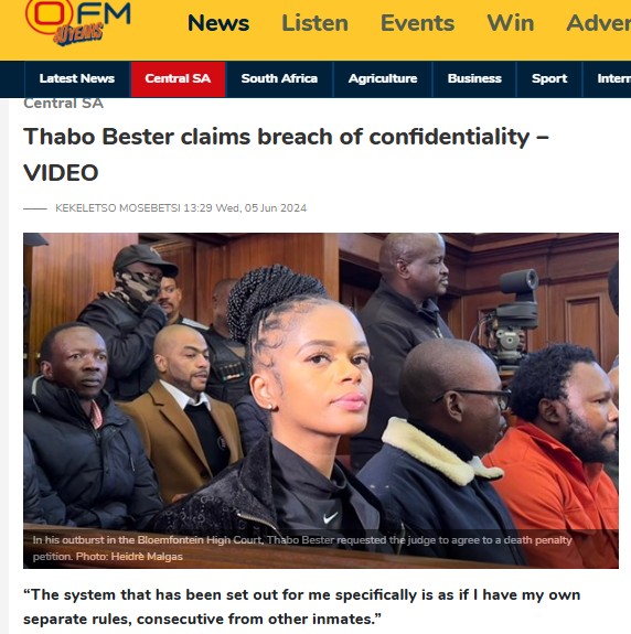 “At this stage, I do not enjoy the rights of an accused person,” Bester said, adding he is being treated as a sentenced offender while simultaneously facing trial on charges related to the same alleged escape.