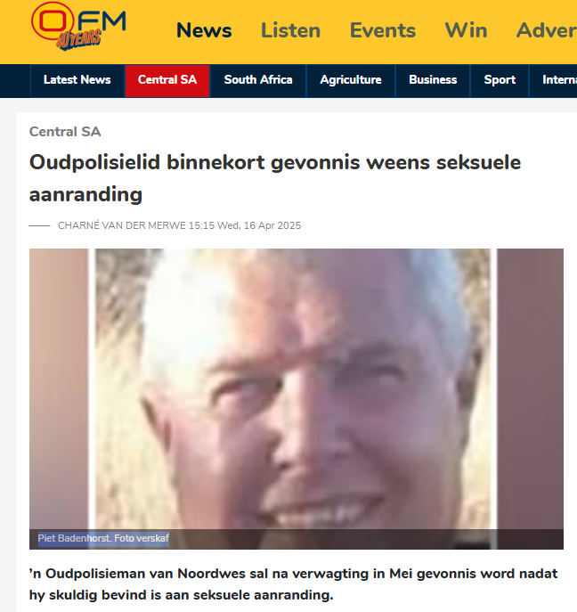 Badenhorst is in Julie tot vier jaar effektiewe gevangenisstraf gevonnis, ná ’n vyf jaar lange regsproses, nadat hy in die Zeerust-streekhof skuldig bevind is op drie aanklagte van seksuele aanranding waarby twee tienerseuns betrokke was. Albei seuns was ten tyde van die voorvalle leerders by ’n skool in Zeerust.