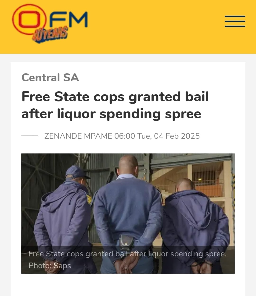 Bloemfontein police officers in hot water─── KEKELETSO MOSEBETSI 08:59 Fri, 03 Apr 2026