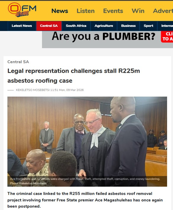 Long wait in R255m asbestos case as accused 1 struggles with legal representation─── KEKELETSO MOSEBETSI 12:00 Thu, 09 Apr 2026