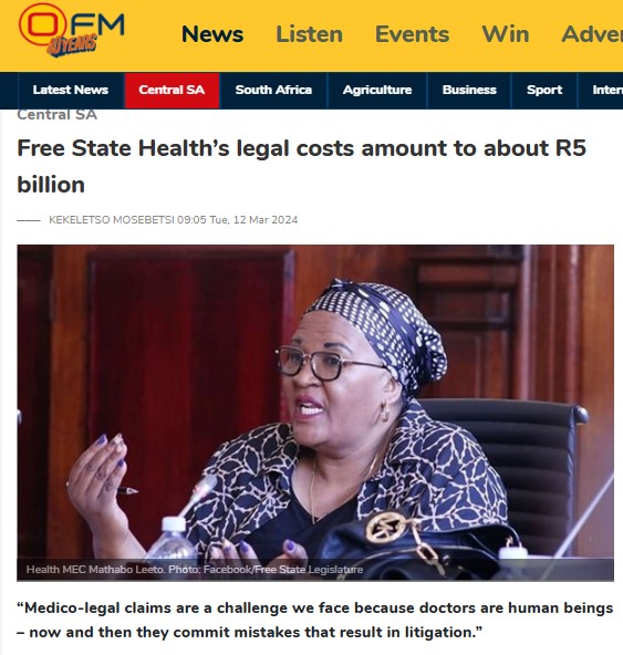 The DA in the Free State says R5.7bn in claims has exposed failures in the provincial health system.