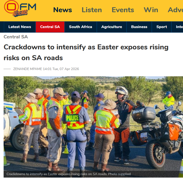 Free State records sharp rise in Easter weekend crashes and fatalities─── ZENANDE MPAME 12:11 Sun, 12 Apr 2026