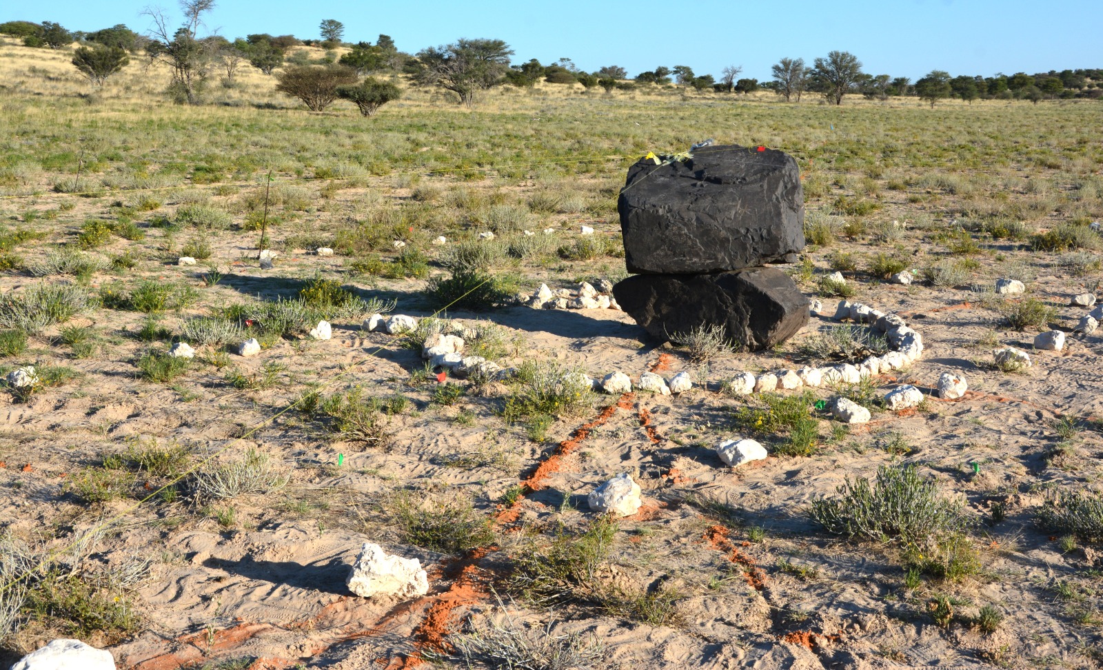 In September, toe die projek op dreef kom, het Tim Vinck van die Internasionale Meerkatnavorsingstasie, 25 km buite Van Zylsrus, hommeltuigfoto’s geneem, en dinge lyk toe nie goed nie. Die ontwerpers was nie tevrede nie, die bestaande lyn moes breër gemaak word. Daar sou weer 10 000 kalkklippe opgetel moes word.