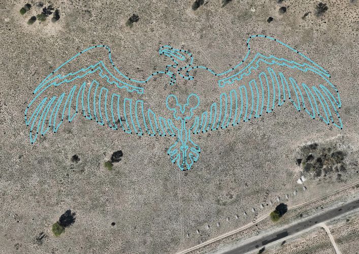 ’n Week voordat die kunsteweek sou begin, is die 3,2 km lange ontwerp van die aasvoël geteken deur die ervare ontwerpers en hul vriende.