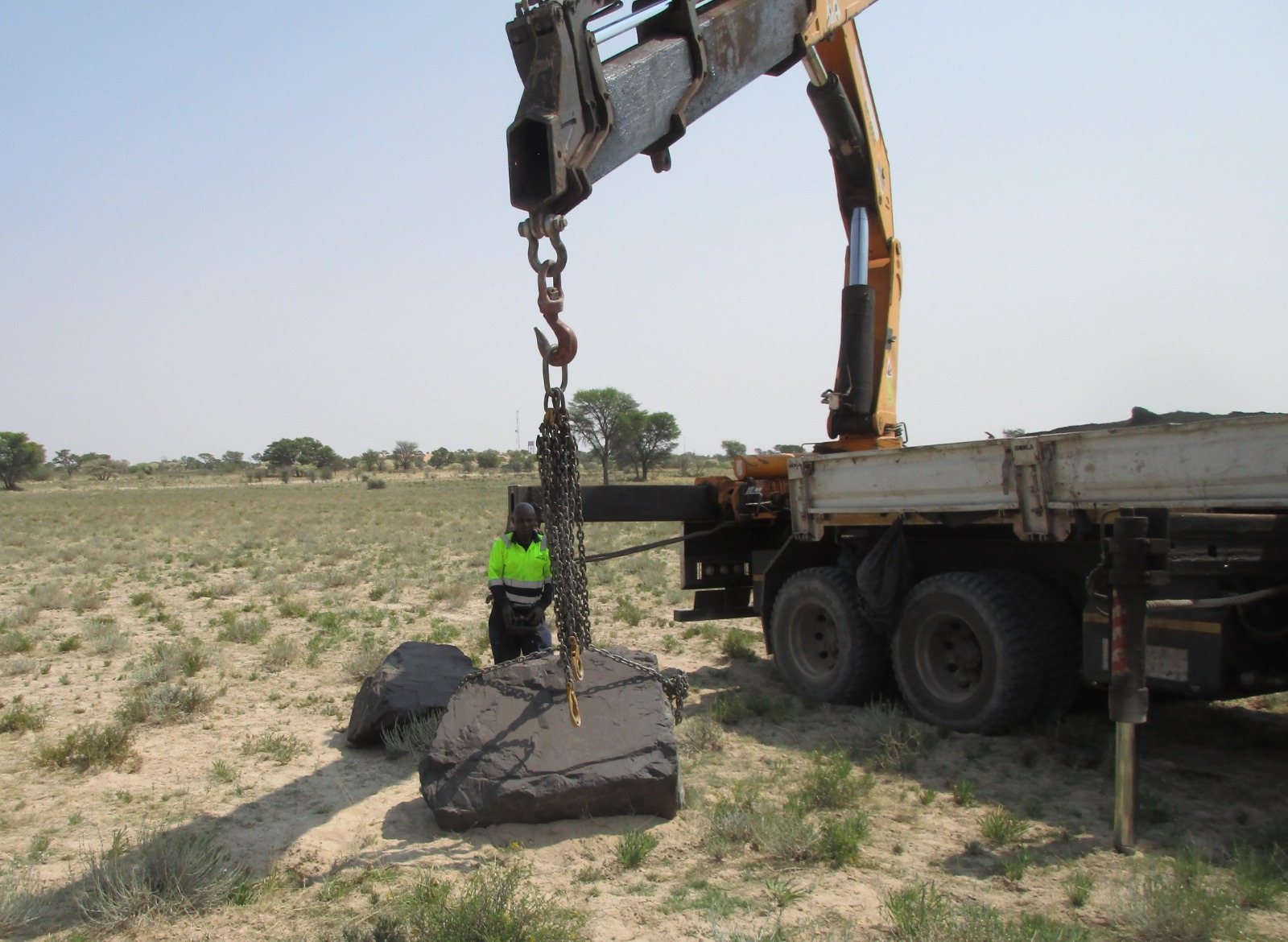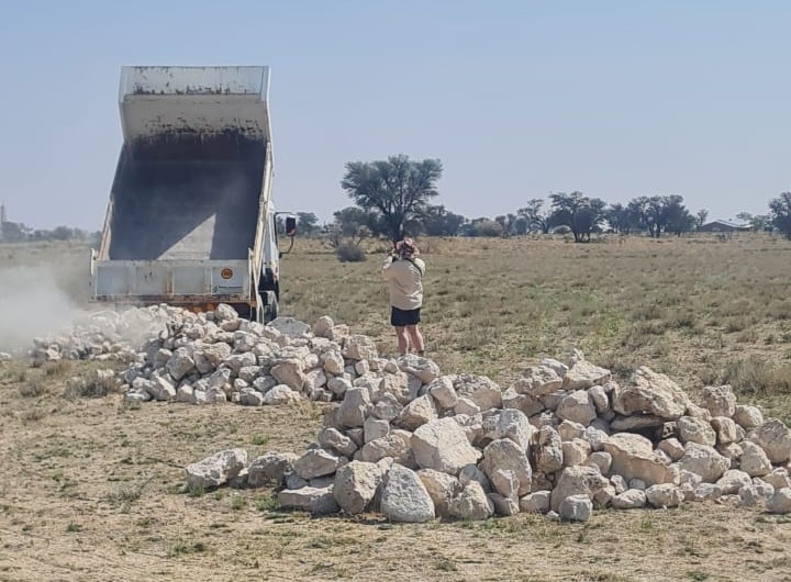 Kobus Duvenhage Bouers van Upington was so opgewonde oor die geoglief dat hy ’n vragmotor en bestuurder beskikbaarstel waarmee die klippe vervoer kan word. Kobus is ’n boorling van Van Zylsrus en het ook reëlings met die landmeter YXZ Resources getref om die middelpunt van die geoglief vir die landkunsspan aan te dui.