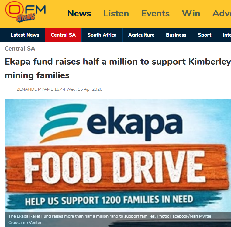 The Ekapa Relief Fund raised more than half a million rand in support of 750 families affected by the mine’s liquidation in February. The money was raised through a fundraising concert, which was held on Saturday (11/4) at The Fire in Kimberley.