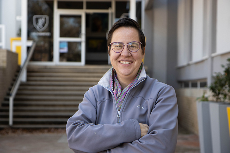 Renatha van Reenen, die eerste dowe Kovsiestudent wat ’n meestersgraad in Suid-Afrikaanse Gebaretaal en Dowestudies verwerf het. Foto: UV