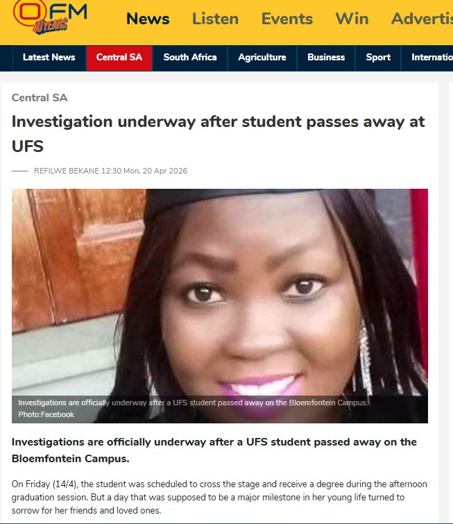 UFS hold memorial service for student Mulalo Nndwa─── REFILWE BEKANE 17:00 Tue, 21 Apr 2026