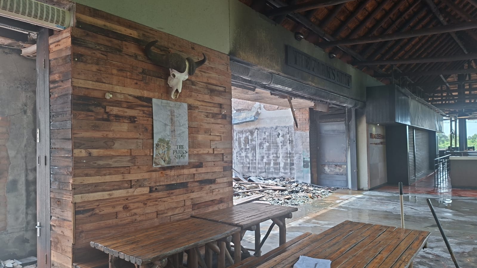 Sanparke sê die brand het Dinsdag (21/4) vroegoggend uitgebreek. Veral die winkel het erg deurgeloop, terwyl die ontvangsgedeelte en restaurant in mindere mate geraak is.