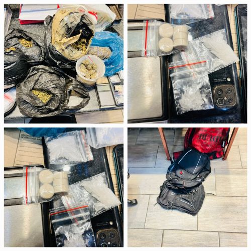 The police seized dagga, mandrax, crystal meth, and a suspected stolen cellphone. Photo: SAPS