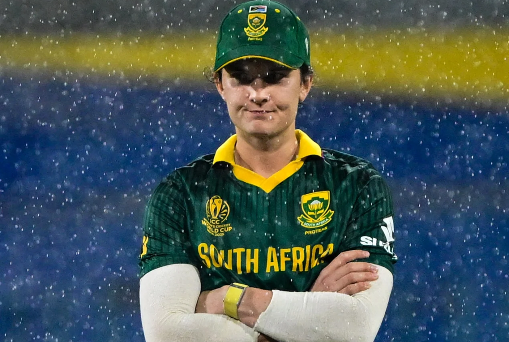 Laura Wolvaardt in the rain. Photo: Cricinfo