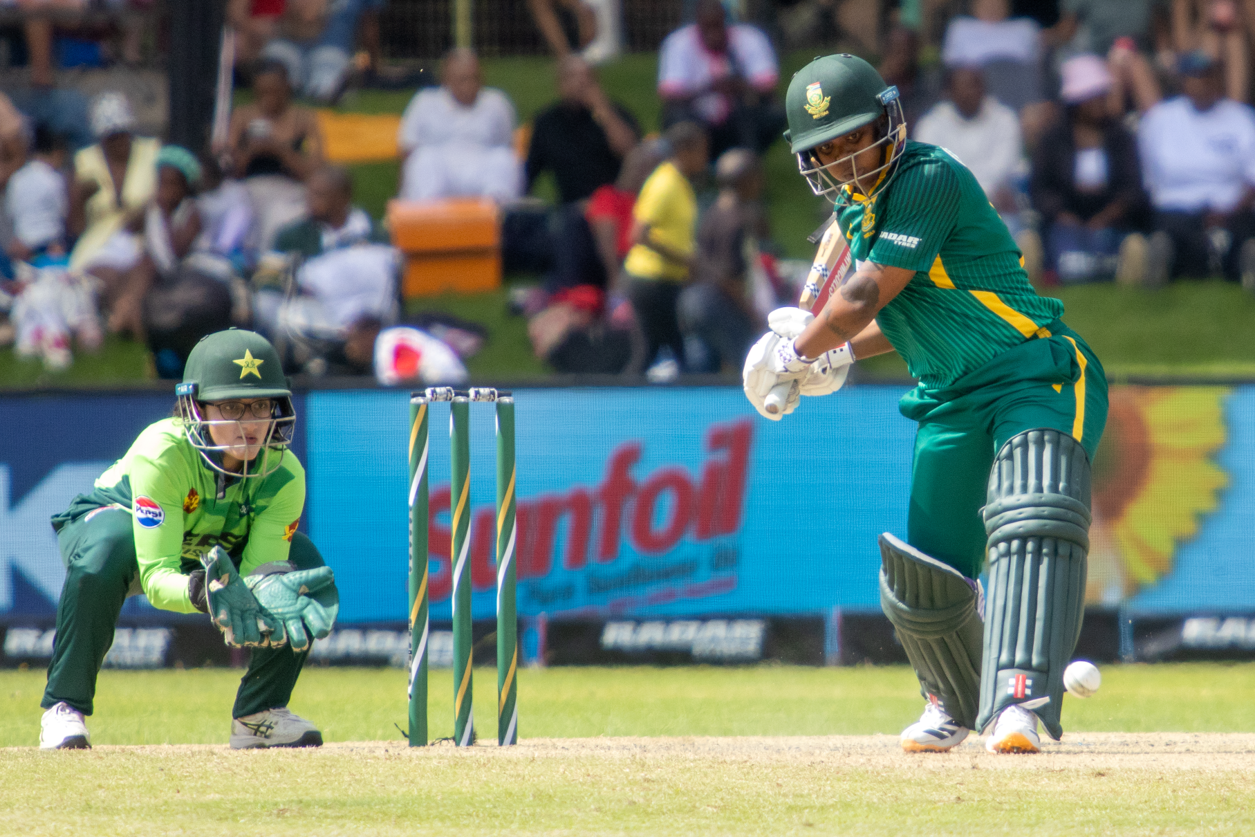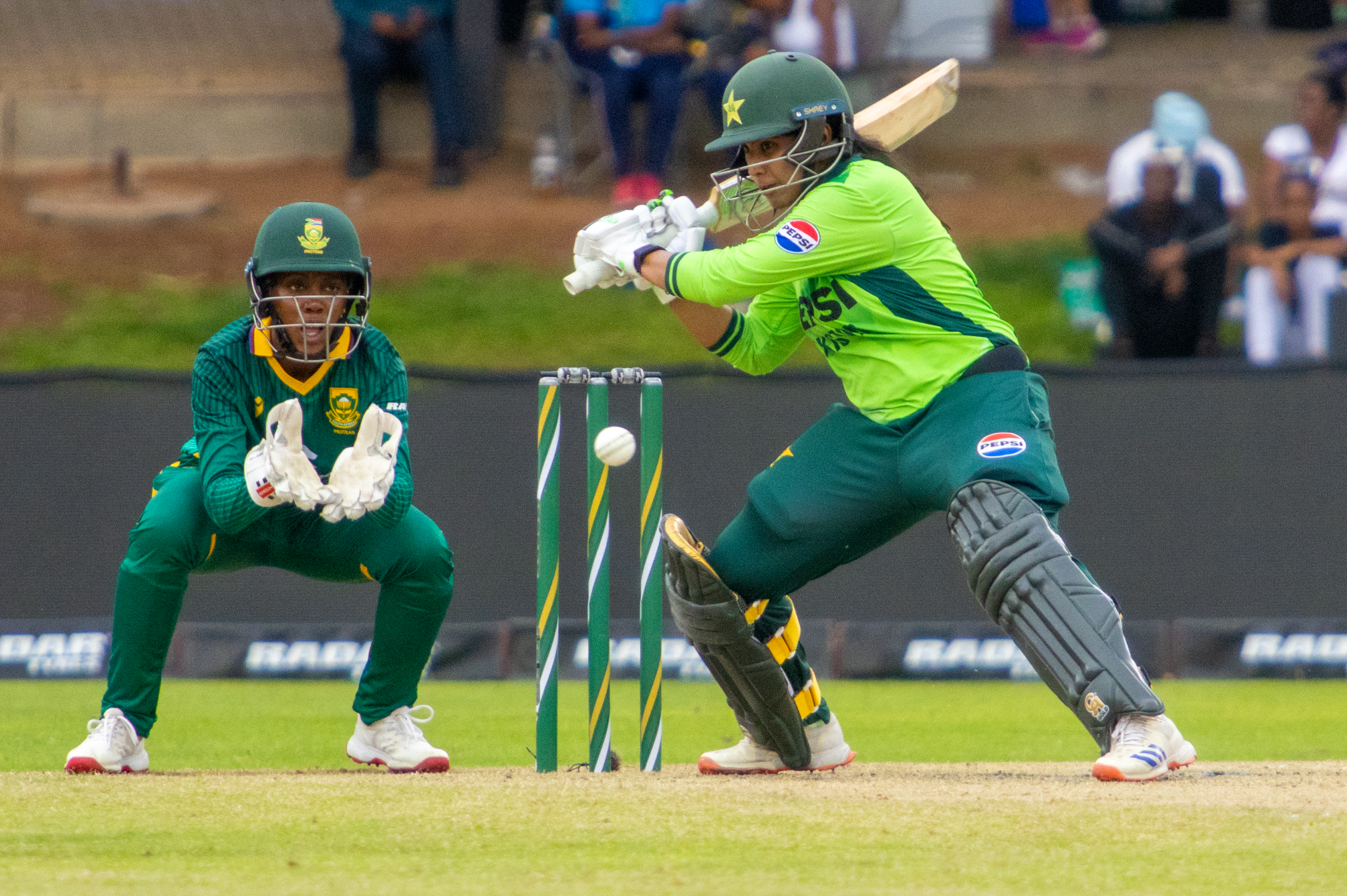 South Africa started strongly with the ball. Ayanda Hlubi struck in the first over, removing Sadaf Shamas for a duck. Soon after, Nadine de Klerk had the dangerous Muneeba Ali caught behind by Jafta for just two, leaving Pakistan on the back foot.