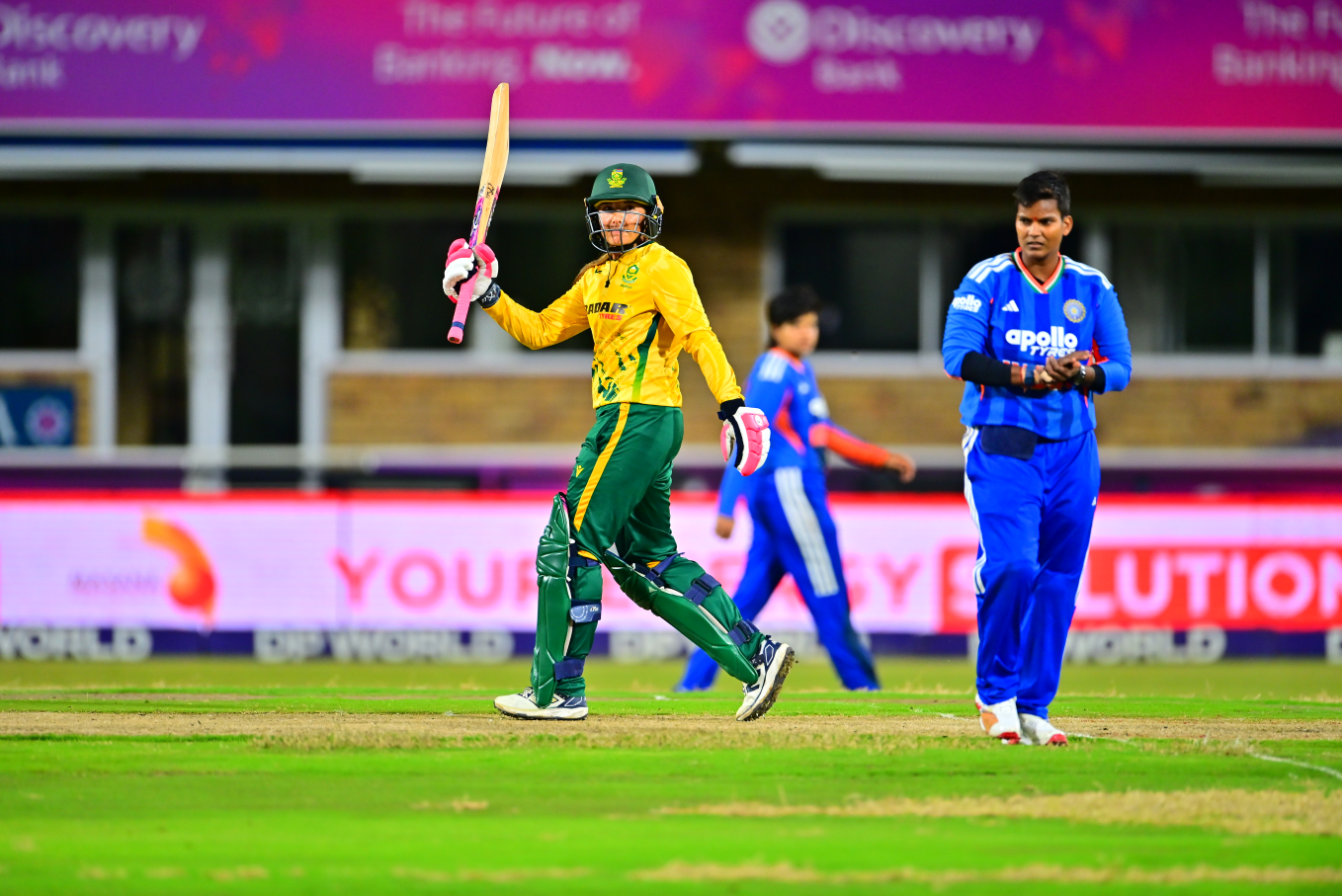 For the Proteas, spinner Nonkululeko Mlaba was the standout with 2/31, while Nadine de Klerk provided solid support with 1/27.