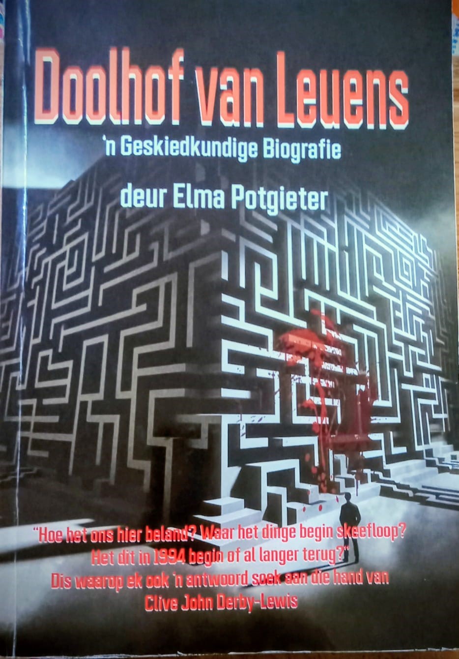 Die aktrise en skrywer Elma Potgieter (80) se jongste boek, ’n biografie oor Clive Derby-Lewis, bied vrae én antwoorde. Doolhof van Leuens is pas gepubliseer deur Mar-Leo Uitgewers. Daarin val die kollig op Clive Derby-Lewis, een van die aangeklaagdes.