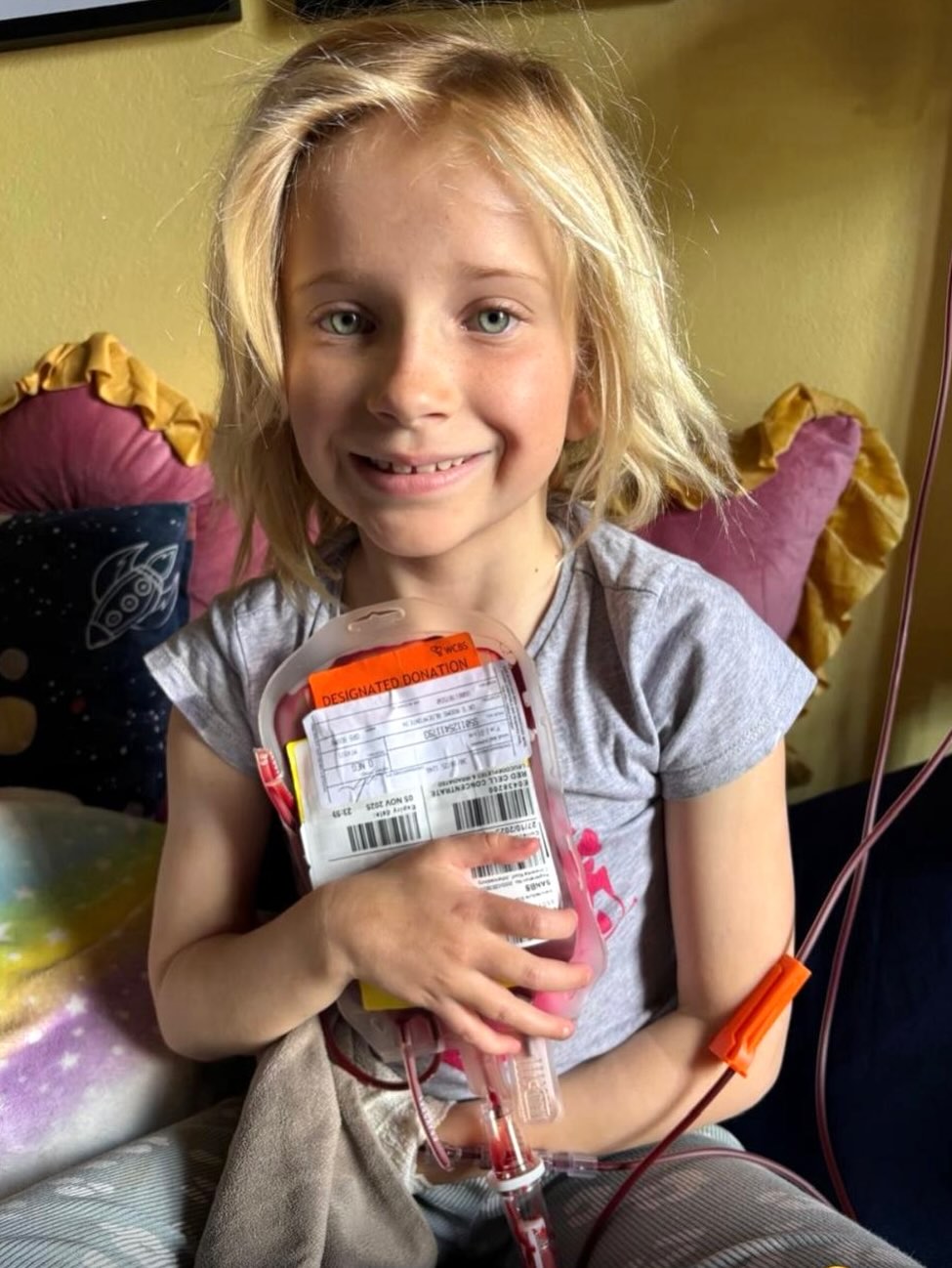 At just six weeks old, Olive was admitted to a neonatal ICU in heart failure. Diagnosed with Diamond Blackfan Anaemia (DBA), a rare genetic bone marrow failure syndrome, her body was unable to produce the red blood cells necessary to sustain life. Since that first critical day, Olive’s survival has depended on a transfusion every three weeks. She has received more than 150 to date.