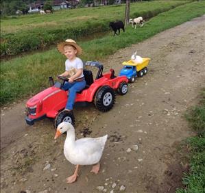 Die seun kan gesien word waar hy verskeie diere, insluitend ’n eend, bok, hasie en hoenders, in ’n speelwaentjie laai en elkeen ’n soen kry. Hy trek hulle op die plaas rond in die waentjies wat agteraan sy gemotoriseerde speelgoedtrekker vasgemaak is. Die video begin oulik, raak ouliker, en dan word dit, wonderbaarlik, nóg beter wanneer ander plaasdiere hulle volg.