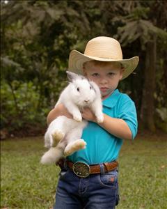 Heitor Borges (3) van Brasilië toets die perke van skattigheid met sy liefde vir plaasdiere. Kykers hou van die manier waarop die plaasvriende dié kind vertrou.