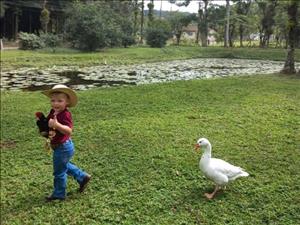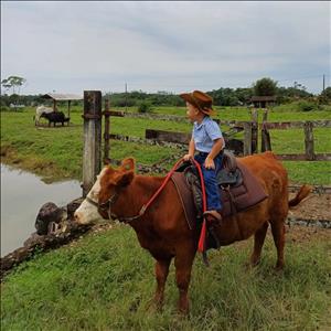 Hierdie baas van die plaas het in November drie geword, en sy beste vriend is 'n haan genaamd Tatá. Hulle woon in Joinville, in die suidelike staat Santa Catarina. Hy verlustig die internet met sy avonture op TikTok (@paidobebecampeiro) en ’n Instagram-rekening genaamd “country baby” (“bebê campeiro”), wat deur sy ouers Karoline en Alexandro Borges bestuur word op 'n plaas waar hulle omring is deur al hierdie lieflike diere.