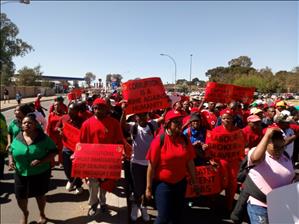 The protests in Bloemfontein were peaceful and closely monitored by police and traffic officials. The members gathered at the Office of the Free State premier, Ace Magashule, and handed over a memorandum of demands to the Free State MEC for Health, Butana Komphela, this afternoon.