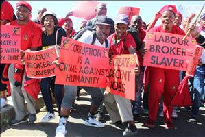 News24 reports that in Johannesburg, protesters gathered outside the trade union's Braamfontein headquarters.