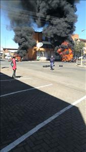 Scenes from this town show a grim picture of violence with tyres burning throughout Siddle Street in the CBD. Buildings perceived to belong to Nigerian nationals were set alight.