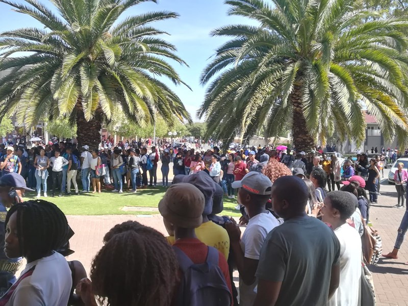 Tempers flared up at the Central University of Technology as all examinations that were set to take place today were postponed until further notice. Students demand that the management of the university address them. They demand that the Vice Chancellor, Henk de Jager, and Deans of the different faculties address them over the postponement of the exams and the safety of students.