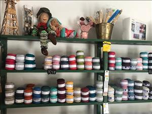 In die winkel word 100% katoenlap, wol-bateersel, katoen-bateersel, organiese katoengare, ontwerp- en borduur van embleme, borduurgare en alle benodigdhede om te kwilt, verkoop.