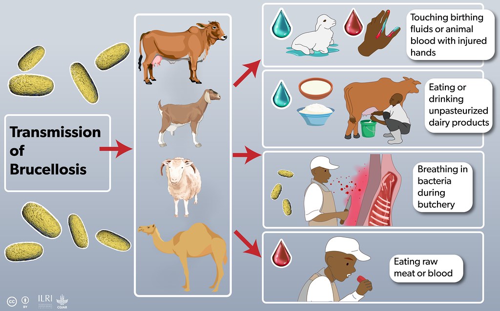 Mense kan die siekte opdoen as hule ongepasteuriseerde melk drink. Pasteurisasie maak bakterieë dood en die melk veilig, daarom is streng maatreëls by melkerye nodig.