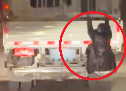 Die verkeerspolisie in die noorde van China is verstom gelaat nadat hulle verskeie berigte ontvang het van ’n vrou wat agterop ’n bewegende bakkie hang.