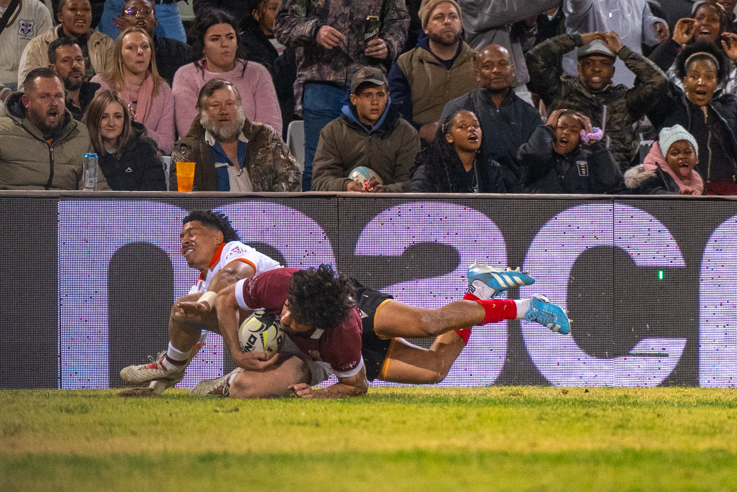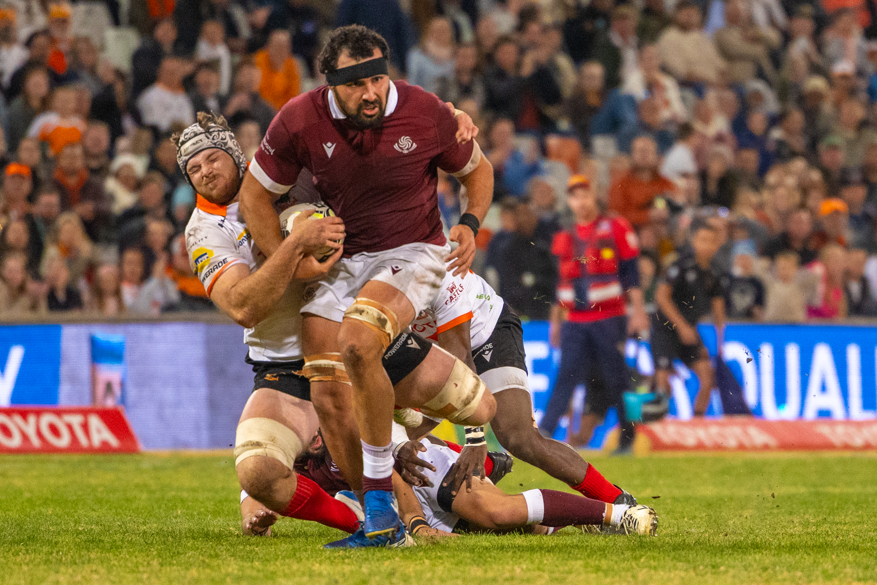 Shalva Aptsiauri van Black Lion het twee keer oor die doellyn gaan kuier tydens Georgië se kragmeting teen die Cheetahs. Photo: Morgan Piek