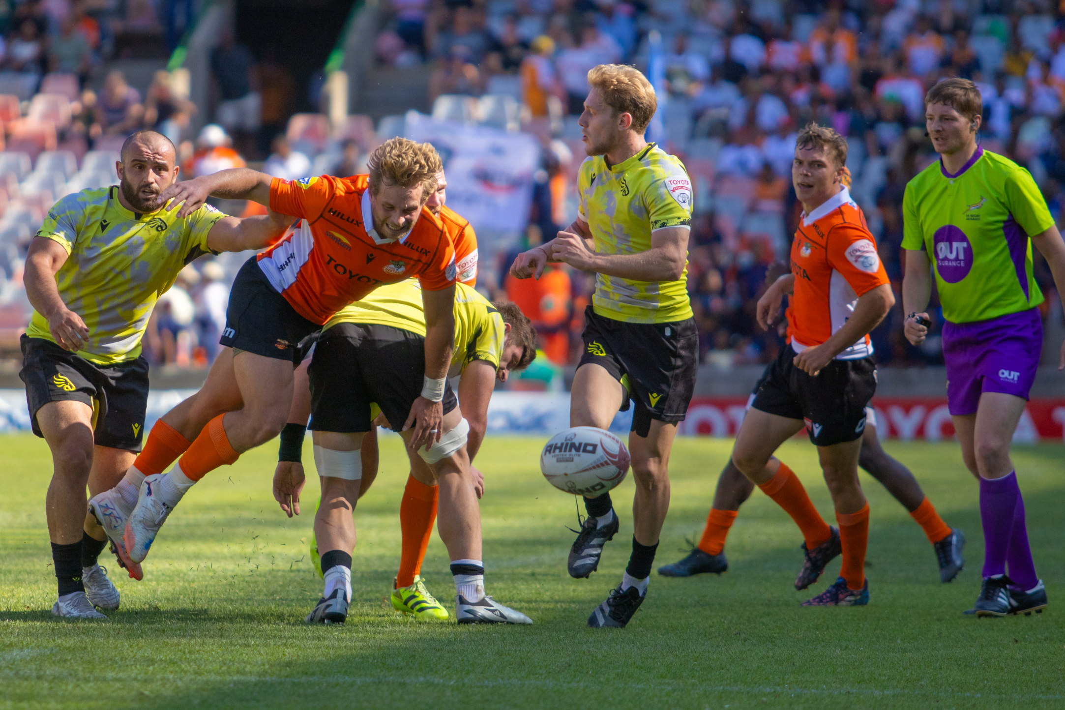 Winger Prince Nkabinde scored a brace for the home side, while Michael Annies and Marko Janse van Rensburg also dotted down. The Black Lion try was scored by the seasoned, grey-bearded hooker Shalva Mamukashvili, who came on as a replacement in the second half.