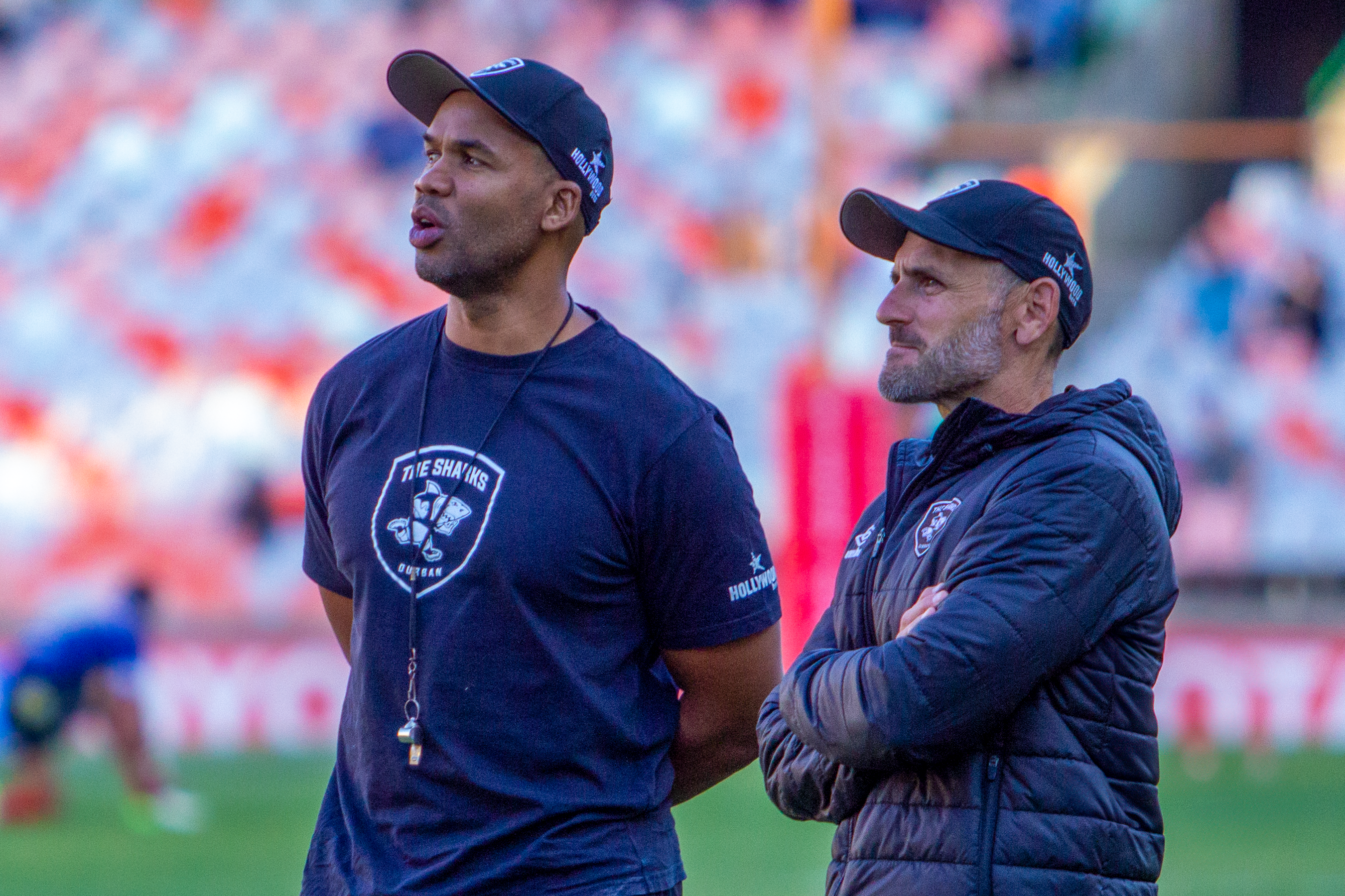 Sharks - 15 Aphelele Fassi, 14 Edwill van der Merwe, 13 Ethan Hooker, 12 André Esterhuizen (captain), 11 Makazole Mapimpi, 10 Jordan Hendrikse, 9 Grant Williams, 8 Manu Tshituka, 7 Vincent Tshituka, 6 Siya Kolisi, 5 Emile van Heerden, 4 Jason Jenkins, 3 Hanro Jacobs, 2 Bongi Mbonambi, 1 Ox Nché