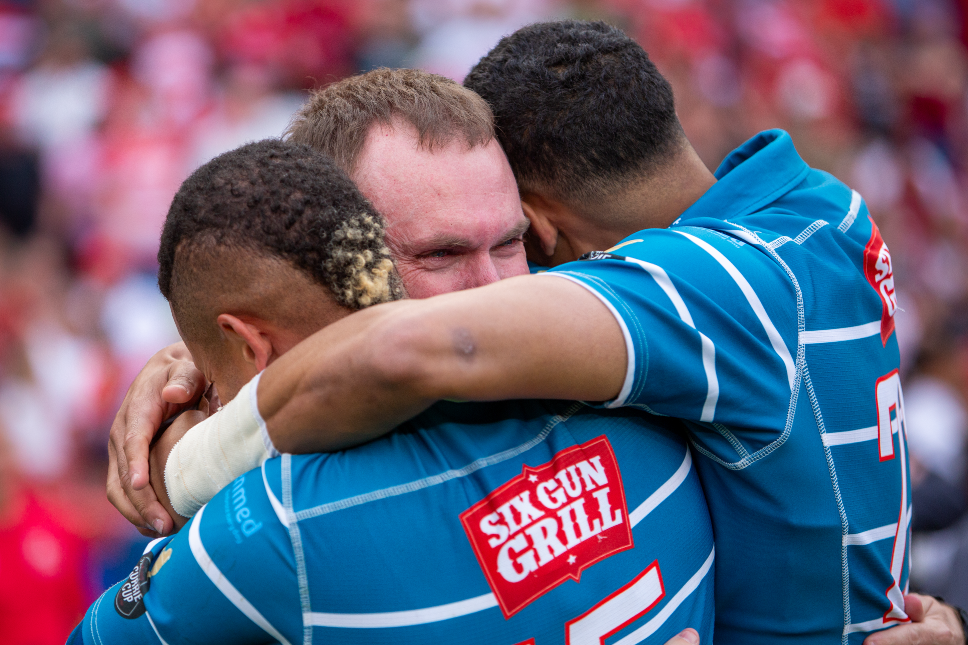 Pieter Bergh with Cameron Hufke and Connor Mahoney after winning the 2025 Currie Cup final. Photo: Morgan Piek
