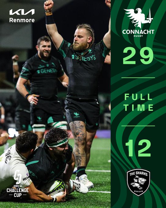 Connacht Rugby victorious over the Sharks in the EPCR Challenge Cup. Image: X/Connacht Rugby
