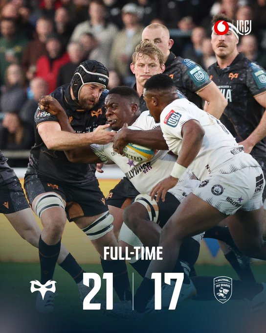 And at Bridgend, the Sharks’ URC play-off hopes are in doubt after they suffered a 21-17 defeat at the hands of Ospreys. The hosts led 14-12 at the break after opening the scoring with a try by Wales international Dan Edwards.