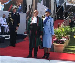 Before taking the oath, President Ramaphosa was honoured by a mighty military salute from the South African National Defence Force personnel which included all arms of the force who ushered the President to the sound of the National Anthem, a 21-gun salute and Air Force display.