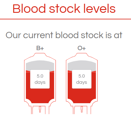 The current blood stock levels at SANBS. Photo: sanbs.org.za