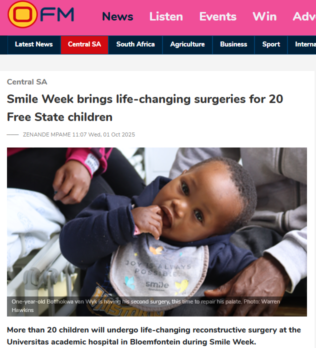 Meanwhile, the Universitas Academic Hospital in Bloemfontein is concluding Smile Week on Friday (3/10) after more than 20 children underwent life-changing reconstructive surgery.