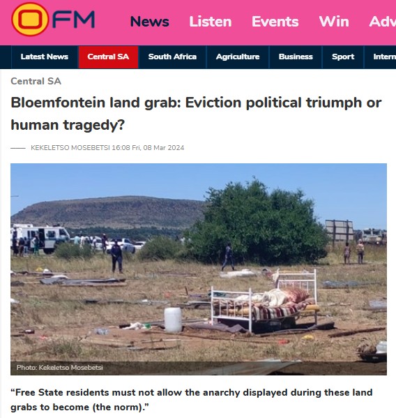 The DA, through a successful urgent application in the Bloemfontein High Court, compelled the metro to remove what it referred to as illegal land invaders.