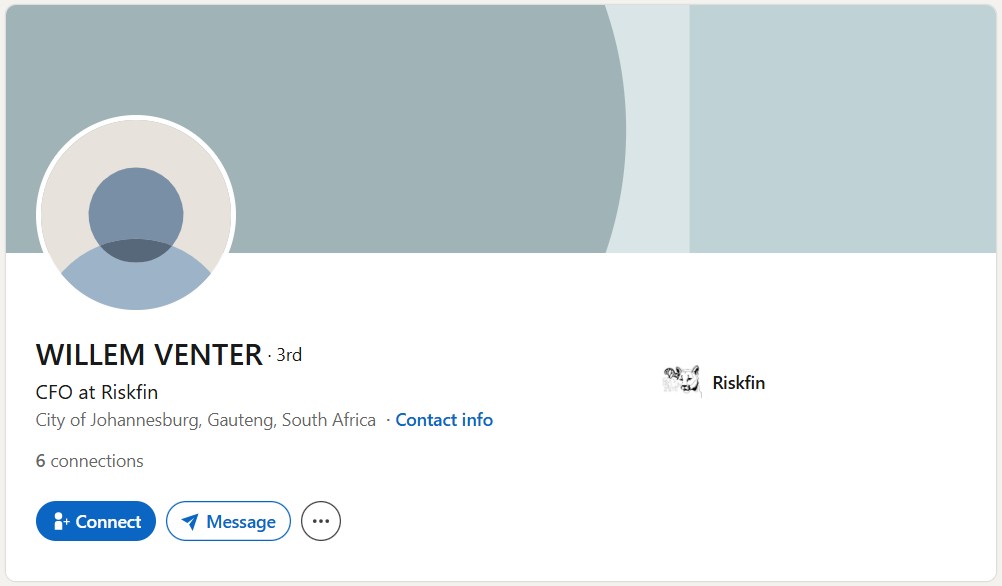 Willem Venter het geen foto op sy LinkedIn-profiel.