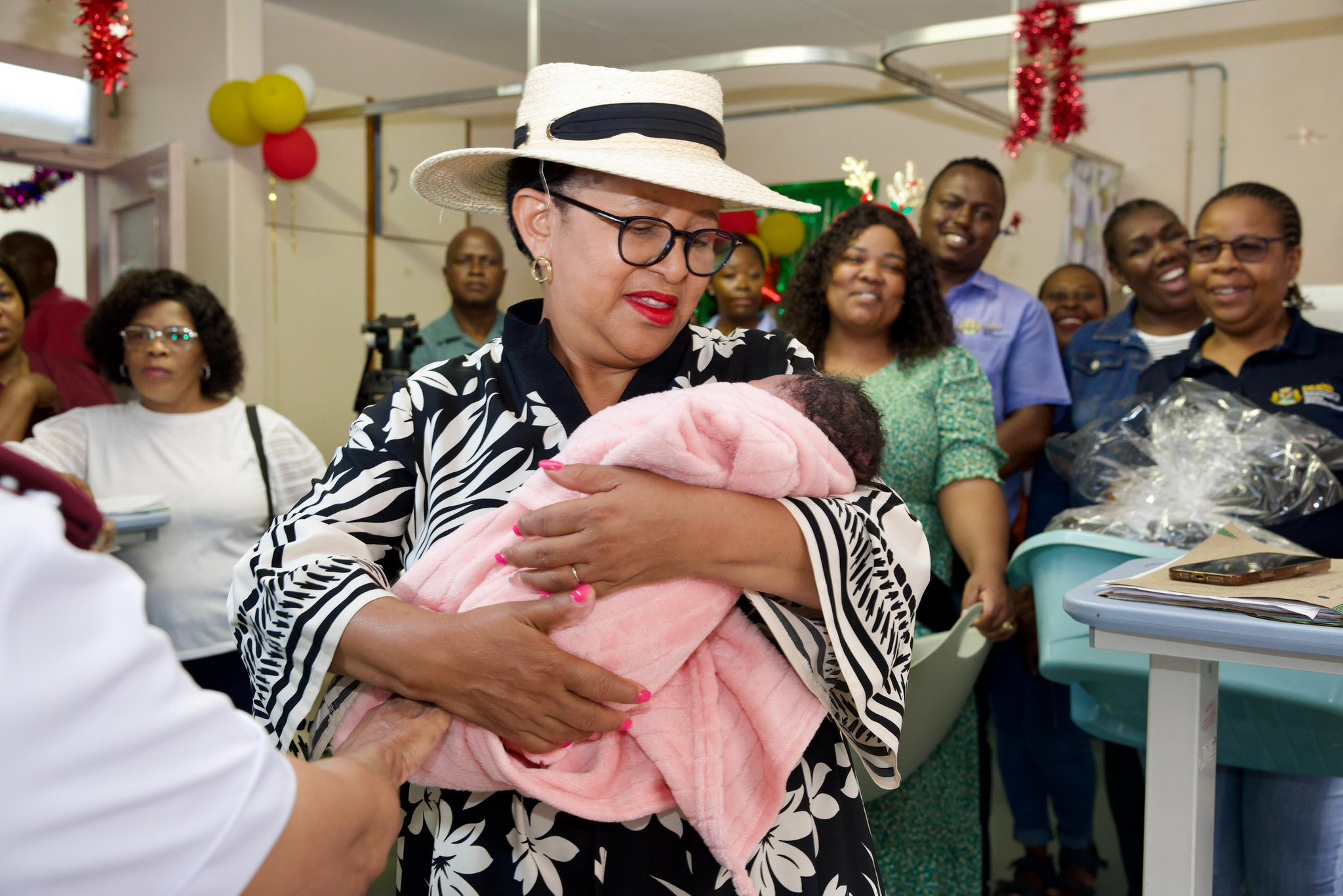 Die Vrystaatse premier MaQueen Letsoha-Mathae, besoek Nuwejaarsbabas by die Pelonomi-hospitaal in Bloemfontein. Foto: Free State Provincial Government//Facebook