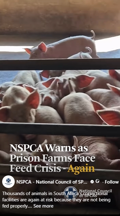 In March last year, the NSPCA intervened at several correctional facilities where farm animals were reportedly not being fed due to budget constraints. Thousands of animals were affected at the time, prompting urgent engagement at the ministerial level.